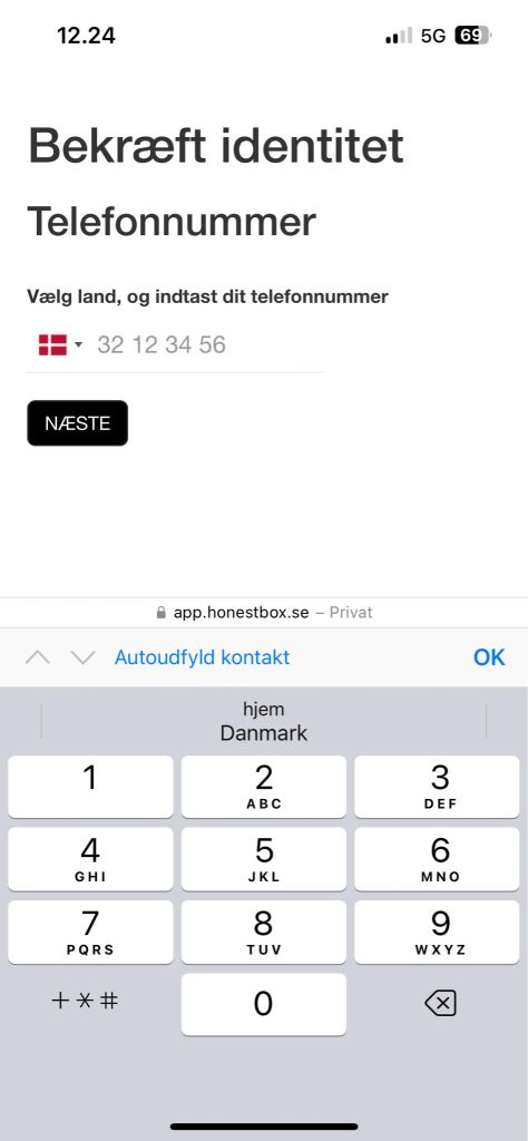 Du bliver bedt om at indtaste en kode fra SMS – derefter har du mulighed for at åbne døren inde på hjemmesiden.